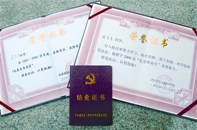 据悉,吴飞飞在校三年成绩优秀,今年临毕业前被学校评为“优秀毕业生”。吴的同学说,优秀毕业生居然拿不到毕业证,真荒唐。