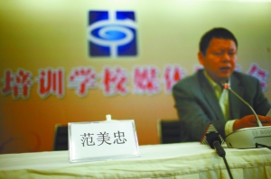 本报讯 (记者王佳琳)昨天,此前曾表示聘用范美忠的北京开华培训学校召开媒体见面会,该校校长冉东正式声明:由于校方对聘用范美忠所引起的各方争议估计不足,学校决定无限期推迟范美忠上岗时间,并为此向范美忠本人表示歉意。