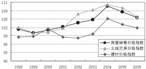 自2000年以来,房地产价格持续上涨。在2004-2006年期间,房屋销售价格指数分别为109.7、107.6和105.5,其中住宅销售价格的涨幅高于非住宅销售价格的涨幅,已经连续4年超过5%。