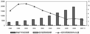 我国从1998年7月1日开始推行经济适用住房,国务院住房改革的纲领性文件(即1998年国务院23号文件)明确提出要以“建设经济适用住房为主”,但是,由于我国住房保障制度尚未制度化、法律化,地方政府无法获得土地出让收入、而开发商利润较低,各方均缺乏投资建设的积极性,因此,自2000年以来,经济适用房占房地产开发投资额的比重呈直线下滑的态势。2005年,经济适用房投资额下降6.8%,其占房地产开发投资的比重下降至3.3%的历史最低水平,较2000年下降7.6个百分点。2006年,在国家的干预下,经济适用房投资扭转了前几年增速持续下降的局面,而转入增长轨道,比重较2005年略有提高,但也仅占房地产开发投资总额的3.6%,房地产供给结构失衡的程度没有得到根本改变。