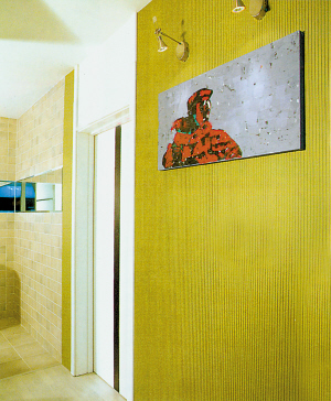 竖线条本身可以使空间得到竖向的延伸,即使是低矮的楼层也不会产生压抑感。平整的墙面过于单调,在墙壁上用平行的竖线条进行装饰就显得活泼多了。首先在墙壁上用石膏板作为贴面,然后从顶到尾镙出平行的凹槽即可。竖线条的壁纸亦可以达到同样效果。