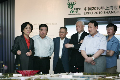 在钟燕群的陪同下,老领导们参观了世博会规划展示厅,并登上世博大厦顶楼俯瞰建设中的世博园区。钟燕群表示,上海世博会的各项筹备工作都在紧张有序的进行之中。世博园区建设、配套设施建设、参展方服务、运营、宣传等工作齐头并进,上海世博会组织者力争“想细、想全、想一万、想到万一,抓深、抓细、抓落实、一抓到底”。钟燕群还就老领导们关心的世博门票、参展进展、世博交通、展馆接待能力等情况进行了详细介绍。