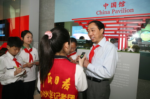5月19日,上海世博局党委副书记、纪委书记许伟国接受了上海市第六次少代会代表及《少年日报》小记者的采访。小记者们就上海世博会学生优惠门票、小朋友如何参与上海世博会等问题进行了提问。