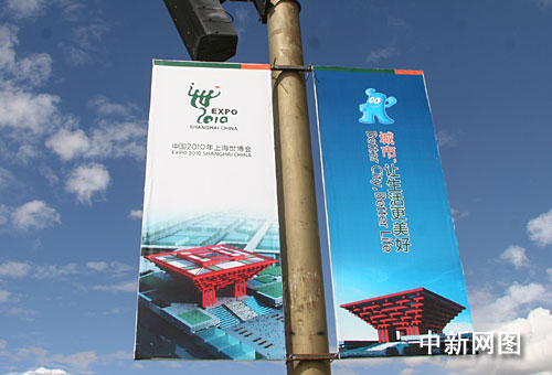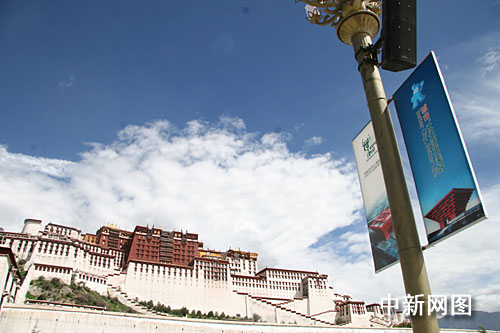 上海世博会西藏自治区宣传周的余热仍未散去,圣城拉萨满眼是世博元素。图为布达拉宫前的世博宣传海报。