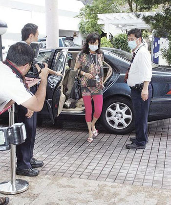 三太陈婉珍与“二房”女儿超凤及超蕸13日两度进出医院探病,面容憔悴的三太在清晨8点半戴着口罩到达,直至中午12时许离开。其间,她被问到赌王昏迷和身体失去活动能力的报道?三太说:“不是真的!”