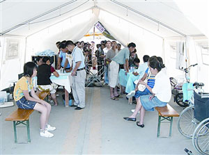 中新网7月28日电 据澳门日报报道,第三支赴川支持的澳门医疗队已于本月21日下午6时许抵达四川都江堰中德红十字会野战医院。当晚队员入住了在马路上搭建的帐篷,并于次日马上投入临床医疗工作,在内外妇儿急诊等各诊室为当地市民服务。