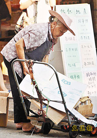 中新网10月20日电 据香港《文汇报》报道,卑躬屈膝靠拾荒维生,换来不足以餬口的微薄收入。香港一项调查发现,逾80%拾荒者没有领取综援,近60%人单靠拾荒每月挣取不足400元收入,最年轻的拾荒者竟为8、9岁的小学生,年纪小小便跟随祖父母捡垃圾,补贴生活。