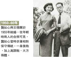1955年9月29日,正是龚如心19岁生辰,她与当时21岁的王德辉结婚。王龚两家是世交,龚如心小时候经常到王家玩耍。后来龚父去世,龚如心在1955年初,由老家上海来港投靠王家。不久,龚如心顺理成章嫁入王家,与青梅竹马的王德辉展开传奇的一生。