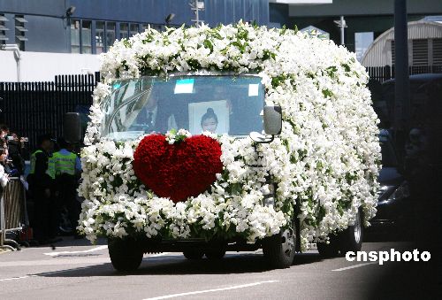 被形容为史无前例的万花灵堂,横匾写上“永远怀念王龚如心”,最特别的是一幅用来覆盖棺木的“花被”,以薄薄夹板做托底,插上数百朵鲜红玫瑰花,伴以绿叶﹔而衬托龚如心遗照的心形花圈,面积约两米乘米半,亦以红玫瑰组成,中心位置预留空间,放进龚生前照片,另外有四个分别以红、白玫瑰花扎成的心形花球.......[全文]