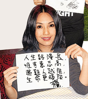 去年曾到访灾区的杨千嬅,眼见当时灾区人民的惨况很伤感,千嬅也有到过重灾区都江堰安慰和送上物资,当时看到灾区一片颓垣败瓦,伤者处处又断水断粮的状况,还历历在目。