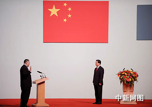 中新社澳门十二月二十日电 (记者 路梅)二十日上午九时三十三分许,在国家主席胡锦涛监誓下,崔世安宣誓就任澳门特别行政区行政长官。他是澳门特区成立以来的第三任行政长官。(完)