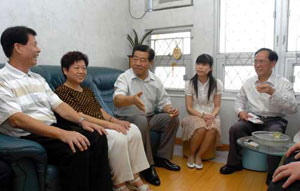贾庆林昨日探访的家庭称得上是“师表世家”,一家六口中,有四人是曾任或是现任教师,不过其中三人已居于别处,现只有户主吴端源、太太陈丽君及女儿吴婉芬居住。吴端源已退休四年,之前于香岛中学任教数理,女儿吴婉芬现在是天水围香岛中学的英文科教师。吴端源说,他还有三个儿子,其中两人分别现职中学和大学教师,当贾主席知道所探访的是个“师表世家”后,亦有点惊讶。