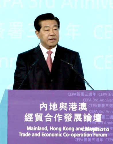 中新社香港六月二十九日电 (记者 俞岚 晓萍 方青木)全国政协主席贾庆林今天在此间“内地与港澳经贸合作发展论坛”上表示,内地与港澳经贸合作顺时应势,大有可为,前景广阔,催人奋进。将来国家会根据实际需要制定新的有关政策措施,有些政策措施如一时尚不宜在全国实行的,可以在泛珠三角区域内先实行起来。他并就进一步加强内地与港澳的经贸合作提出四点意见: