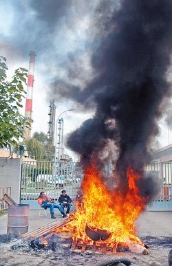 巴黎当局十八日启动危机紧急处置机制,并发布要求炼油厂工人复工的命令,但罢工工人在巴黎东方大井炼油厂的进出要道上堆起轮胎,表明拒绝执行政府的复工命令,僵局短期内难以化解。