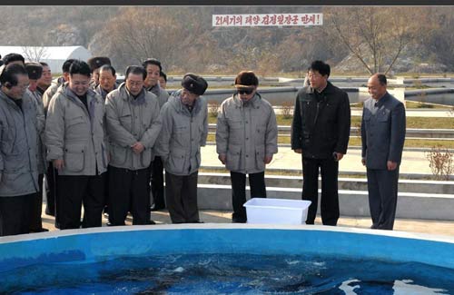 在视察位于朝鲜黄海南道的龙沿(音)养鱼场时,金正日指出,朝鲜三面环海,海水资源丰富,各个位于海边的单位都应该学习这家养鱼场的成功经验,大力发展养鱼事业,为改善人民生活做出贡献。(宋伟钢)