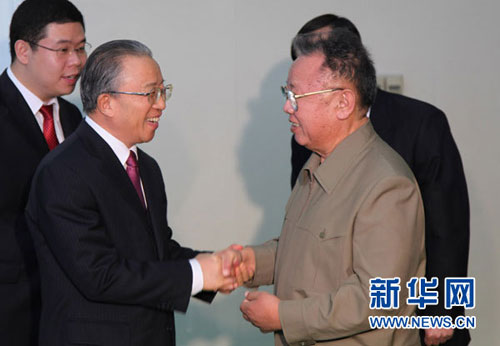戴秉国向金正日转达了胡锦涛主席对金正日委员长的亲切问候,金正日对此表示感谢,并请戴秉国转达他对胡锦涛主席的亲切问候和良好祝愿。
