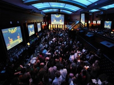 从纽约、洛杉矶到华盛顿,大街小巷都聚集了很多人,驻足观看路边大屏幕直播奥巴马和麦凯恩的激辩。很多地方甚至因此造成了交通堵塞。