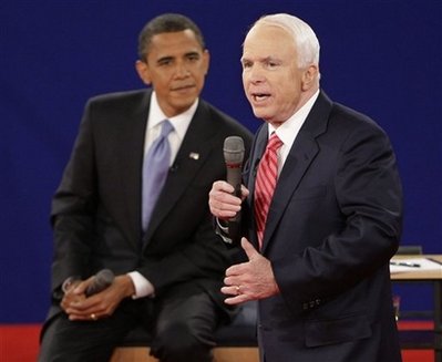 中新网10月8日电 综合报道,美国当地时间10月7日晚上21点左右(北京时间10月8日早上9点左右),美国共和党总统候选人麦凯恩和民主党总统候选人奥巴马在田纳西州的贝尔蒙特大学开始辩论,这是两人选举议程的三场辩论中的第二场辩论。