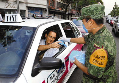 墨西哥城前日起口罩销情突然畅旺,口罩迅即卖清,卫生当局则派员到国际机场、地铁站和巴士站派发口罩。墨城当局决定学校停课,610万学生留家。市内一切由国家和市政府举办的文化活动暂停。