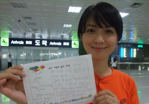 中新网9月19日电 16日下午日本MBS电视台的6名摄制人员和演员松木丽娜(音)拿着一张明信片来到韩国。他们是来找那张明信片的主人的,明信片上用韩文写有一个孩子的纯朴心愿,题目是“我家人的梦想和希望”。信上写着,“爸、妈祝你们长寿”“秋季开运动会时让我们跑接力”“让我的梦想实现(足球运动员)”,署名为徐亨镇(音)。信里的字歪歪扭扭,还有不少缀字法错误,看来是10岁左右的儿童写的。