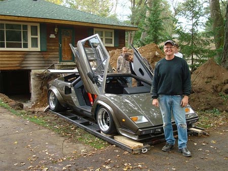据俄罗斯新闻网报道,这名美国人在自家地下室,用时17年手工打造出自己的超级兰博基尼跑车。但如何从地下室脱出跑车又成一问题,为此Imhoff不惜墙倒屋塌,专门找来掘土机在自己房屋下开出一个大洞,成功将跑车拉出来。在这个过程中,他唯一担心的是砸下了的石头会否砸坏他的爱车。
