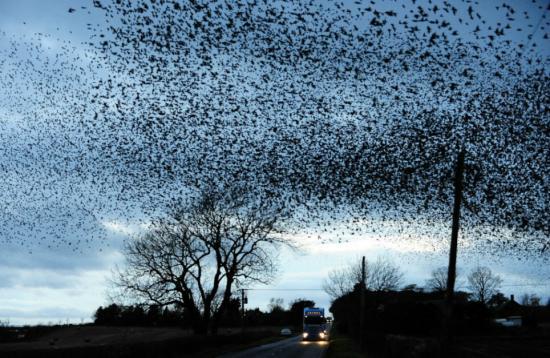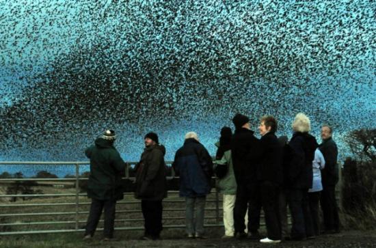 苏格兰小镇格莱特纳·格林的天空,最近被数百万只飞鸟所占据,它们在日落时分上下翻飞,吸引了众多参观者仰头张望。媒体11日报道称,这些鸟儿喜好迁徙和群聚,傍晚从别处飞来寻找栖息之所,这才给当地带来这幅“奇景”。
