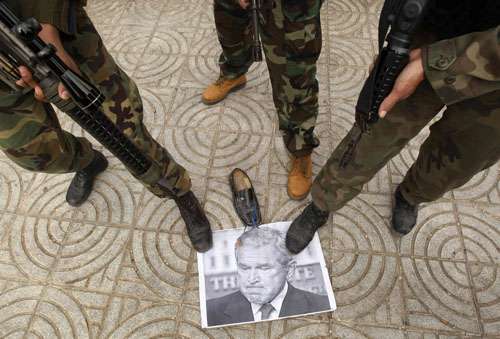 周日在布什同马利基联合举行的新闻发布会上,扎伊迪脱下自己的鞋子,怒向布什砸去,同时用阿拉伯语大喊,“这是临别之吻,你这禽兽。这是孤儿寡妇以及在伊拉克丧生的人送给你的!”扎伊迪随后被安全人员按倒在地,带离了会场。