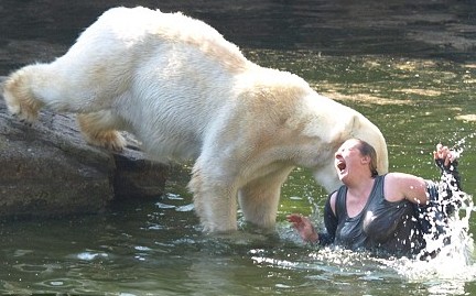 中新网4月12日电 据英国《每日邮报》报道,日前,一名德国女子突然跳进北极熊馆内熊进食的区域,4头北极熊中的一头游近她并袭击她。她的手、臂、脚和背部被熊严重咬伤,但没有生命危险。