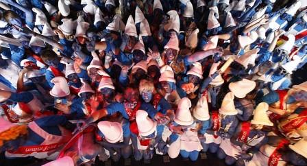据悉,前纪录是由1253名蓝精灵于去年在爱尔兰城镇卡尔斯布拉尼创造的。