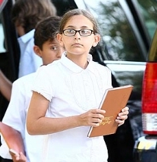 她跟12岁的哥哥普林斯和七岁的弟弟,是在杰克逊的姐姐蕾比的陪同下,参加了在洛杉矶耶和华见证人教会举行的追思礼拜。