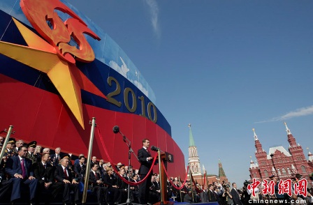 据报道,莫斯科时间5月9日上午10点(北京时间9日下午2点),俄罗斯在莫斯科红场举行盛大的阅兵式,庆祝卫国战争胜利65周年。