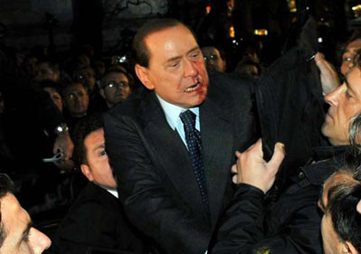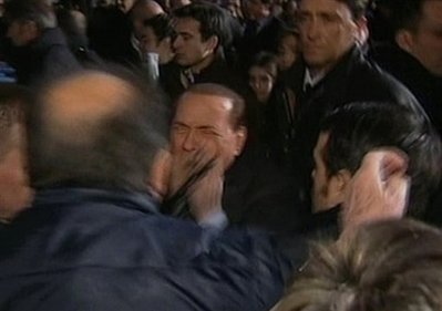据香港《文汇报》报道,事发于13日晚6时半左右,老贝刚于米兰大教堂附近发表完政治演说,准备给支持者签名后离开。在他与助手交谈之际,袭击者突然隔着保镖向老贝抛掷硬物,老贝立即双手捂脸,表情痛苦,保镖马上制服袭击者。多家电视台正在周围拍摄,整个遇袭过程被清晰地拍下来。