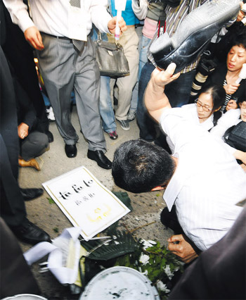 卢武铉的支持者还在首尔德寿宫大门外设立祭奠所。为防止悼念活动中出现意外,政府在那里部署了防暴警察。