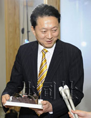 鸠山笑容满面地说:“对能收到这样甜蜜的礼物表示感谢。”回顾过去的一年,他又苦笑着说:“虽然自己尽心尽力了,但得不到国民理解的时候只能承受痛苦。”