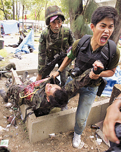 中新网5月21日电 据香港《文汇报》报道,泰国军方清场与红衫军激战,曼谷惨成战场,国际人权组织“人权观察”20日指摘双方严重侵犯人权,批评红衫军射杀记者,又以儿童作为人盾,行径应遭谴责。