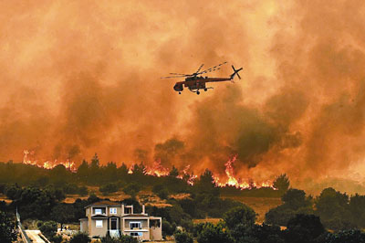 强风周五在24小时之内横扫希腊全国,燎起了100多个火点。此外,西部的扎金索斯岛也发生了一场大火,不过没有殃及房屋,消防队派出了两架飞机、4架直升机、46名消防员和18辆消防车。