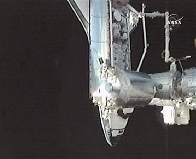 因此在周五对接前,“奋进”号还故意底朝天露出航天飞机底部,让空间站宇航员拍摄照片,检查飞机底部的隔热装置有没有受损。美国宇航局表示,似乎并没有大问题。