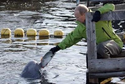 除了展现男子气概,普京近年亦用心营造柔情一面。俄政府发声明表示,普京7月31日到了俄罗斯远东地区,穿起潜水衣,在太平洋的契卡洛夫岛为一条白鲸装上卫星追踪器。这是一个白鲸迁徙模式研究的一部分。普京当时问:“她不会咬人吧?”他其后更帮手喂饲其他白鲸。普京当日又到700公里外的哈巴罗夫斯克市,出席一条新天然气输气管的启用仪式。