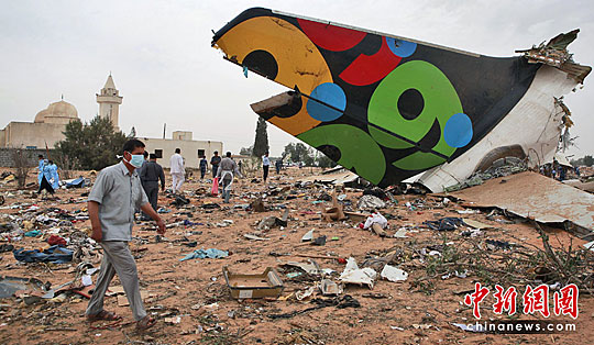中新网5月12日电 综合报道 当地时间12日早晨6点,一架从南非约翰内斯堡起飞的利比亚泛非航空公司(Afriqiyah Airways)的空客A330客机在试图降落利比亚首都的黎波里机场时突然坠毁,机上载有104名乘客和机组人员,除1名据信为荷兰籍的10岁男童幸存外,其余103人全部遇难。