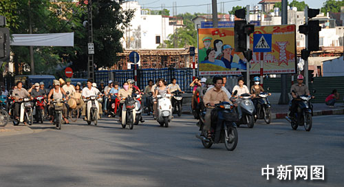 初到河内,给人印象最深的还是密密麻麻摩托车,正如人们传说的那样,河内确实是“摩托车王国”。所到之处,摩托车无所不在,河内人离不开摩托车,摩托车已经是河内市民不可缺少的交通工具。作为一个国家的首都,人均拥有摩托车在80%以上,摩托车如此之多,如此之密,堪称摩托车之都!摩托车已成为河内市民生活的重要组成部分,成为这里生活水平、生活方式的综合反映。王红纲 摄