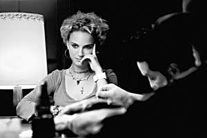 《蓝莓之夜》中,诺拉琼斯扮演的伊丽莎白在拉斯维加斯遇到了波特曼扮演的莱斯利,失恋的伊丽莎白在莱斯利身上找到同感,据王家卫开玩笑透露,这部电影中惟一的“床戏”就由两人演出,当然两人是趟在床上谈心。据赵薇经纪人陈蓉介绍,为了娜塔丽·波特曼的角色,赵薇从12月4日晚6点到第二天凌晨5点全泡在录音棚里,王家卫认为赵薇的声音和波特曼的气质比较相符,因此他对赵薇的配音非常满意。