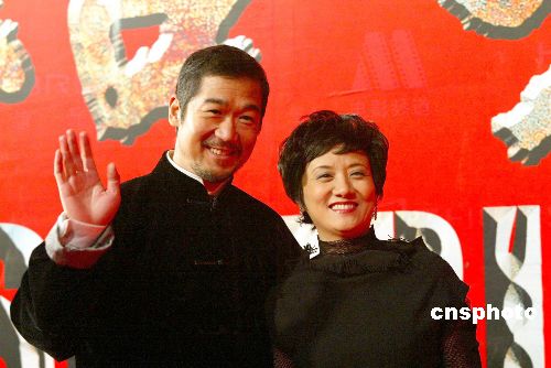 图为张国立夫妇出席首映活动。