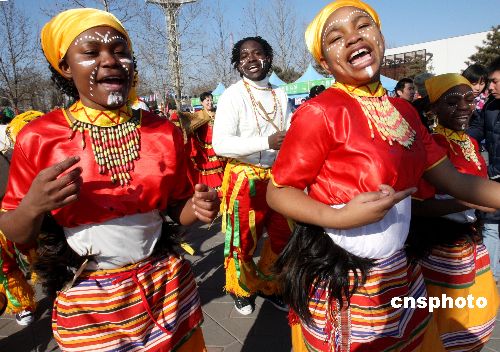 图为展现具有原始艺术魅力的非洲文化AFRO鼓乐歌舞团表演。