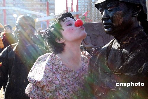 图为中国艺术家展示的人体雕塑吸引外国艺术家。