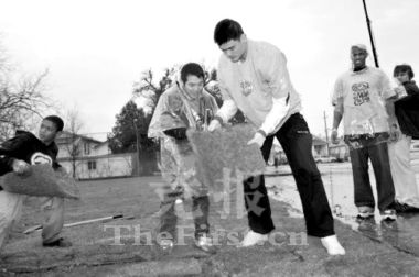 日前,功夫巨星李连杰与中国球员姚明一起出席了美国NBA全明星慈善活动,参加了新奥尔良巨星城的慈善植草皮活动。