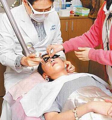 裴琳(前)昨到美容诊所治疗满脸痘花。