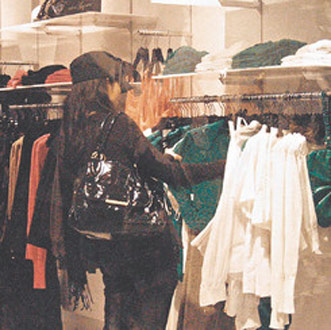 周慧敏对很多件靓衫都爱不释手。