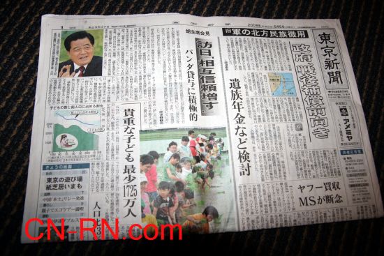 胡锦涛主席访日 日本四大报头条报道(组图)(2)
