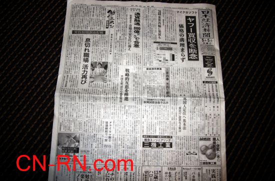 《日本经济新闻》以中日首脑迈向定期交往、中日加强互惠关系为题来报道胡锦涛访日。
