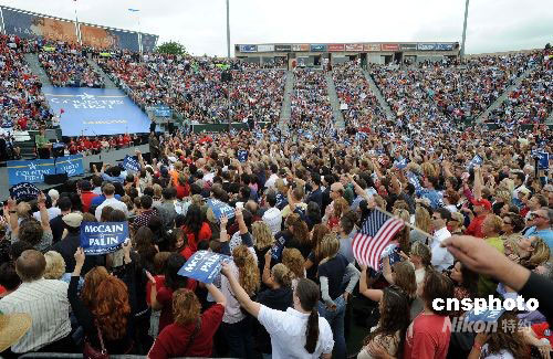 佩林此行目的除了演讲造势,还将参加筹款会为麦凯恩阵营募款。中新社发 张炜 摄